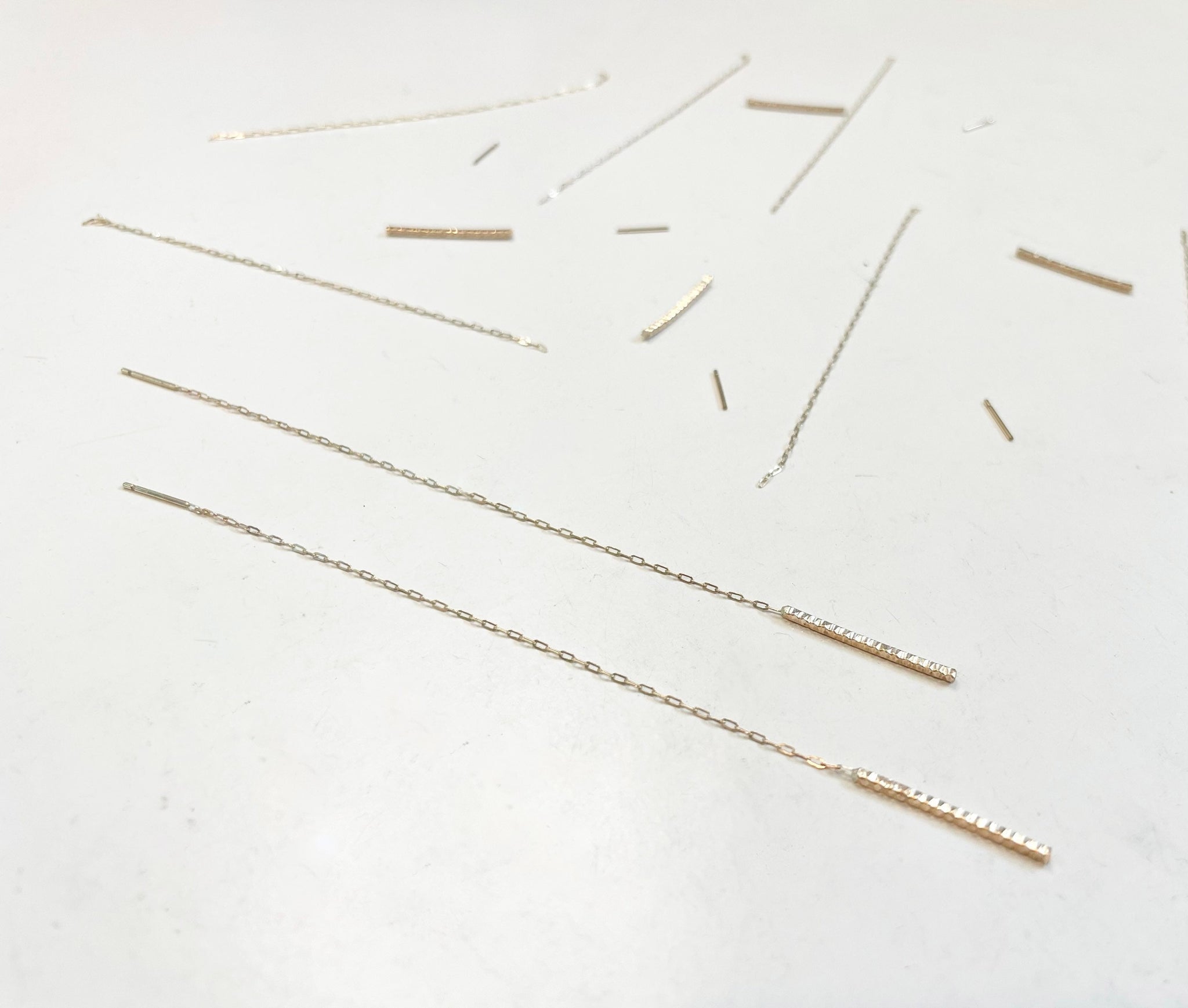 Dress them up or down simple sparkly 14k gold filled bar earrings, can be threaded through multiple earring holes (see photos for example). These earrings are so lightweight you might forget you are wearing them, easily an every day earring but also elegant when all dressed up!