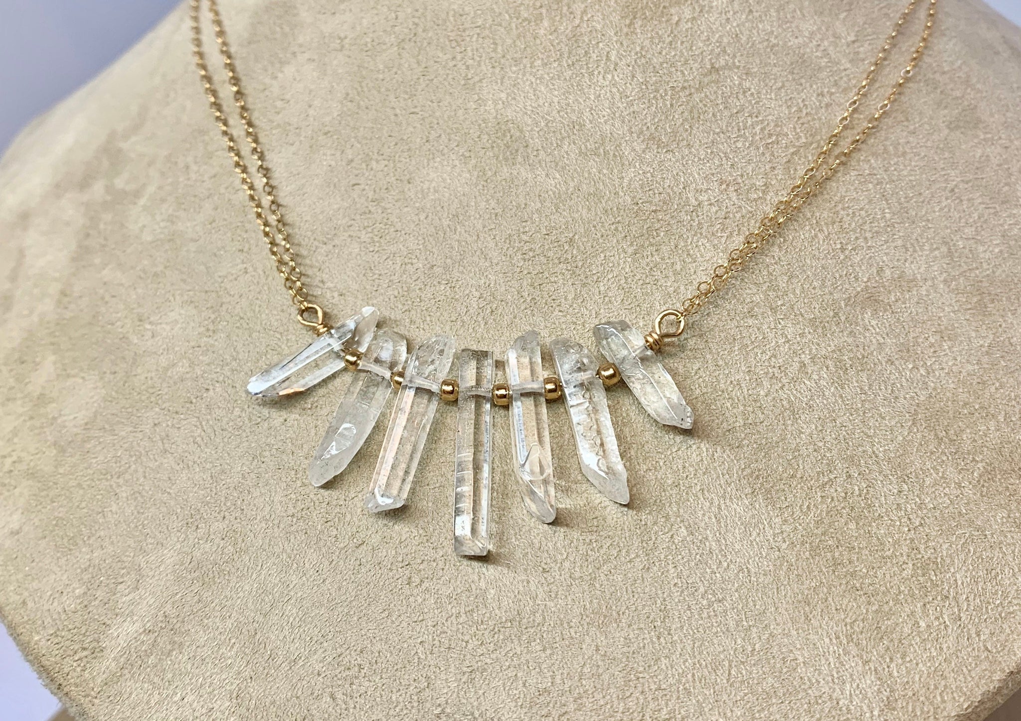 Hand made bohemian quartz crystal point necklace, a perfect accent to any outfit