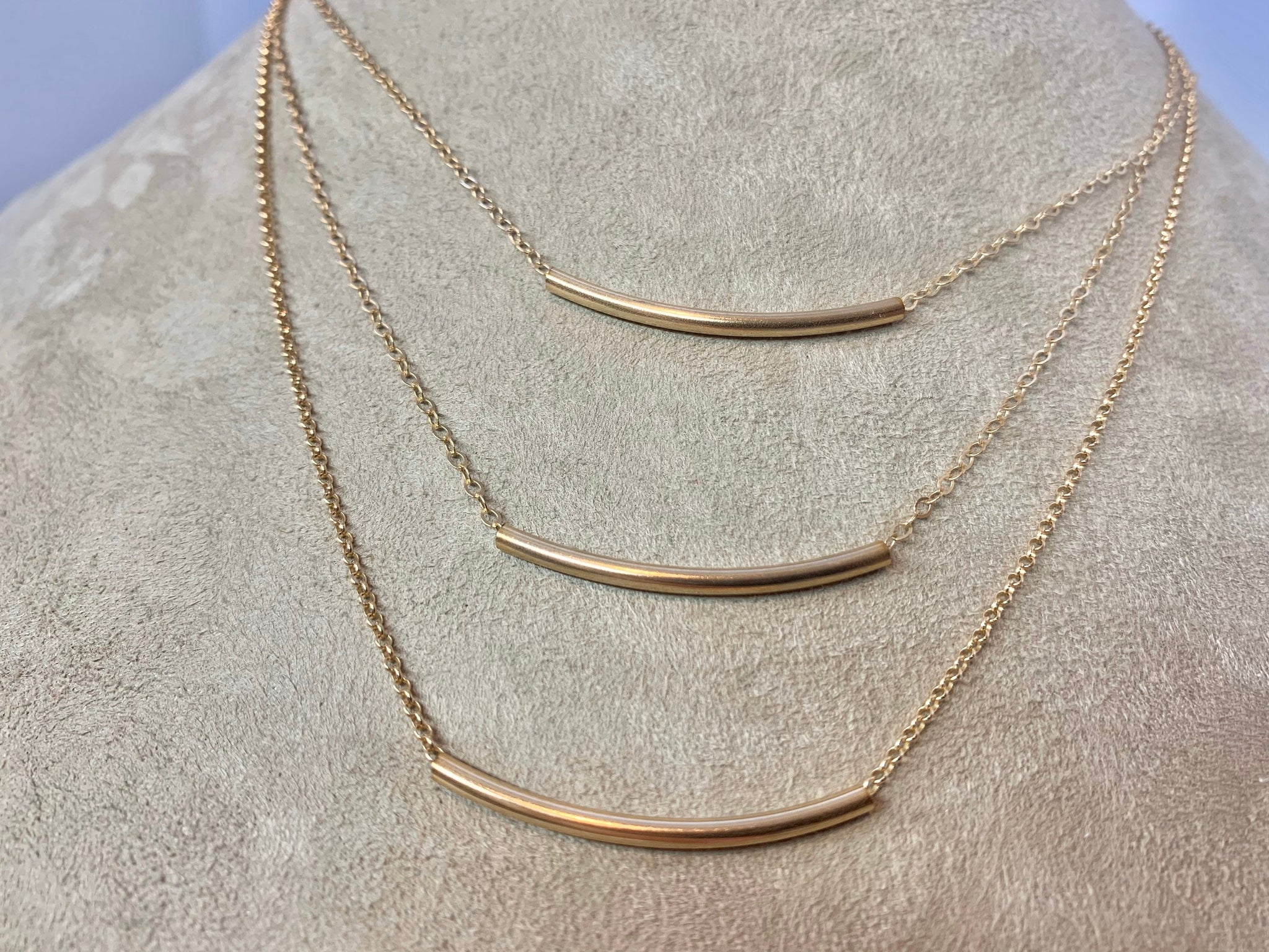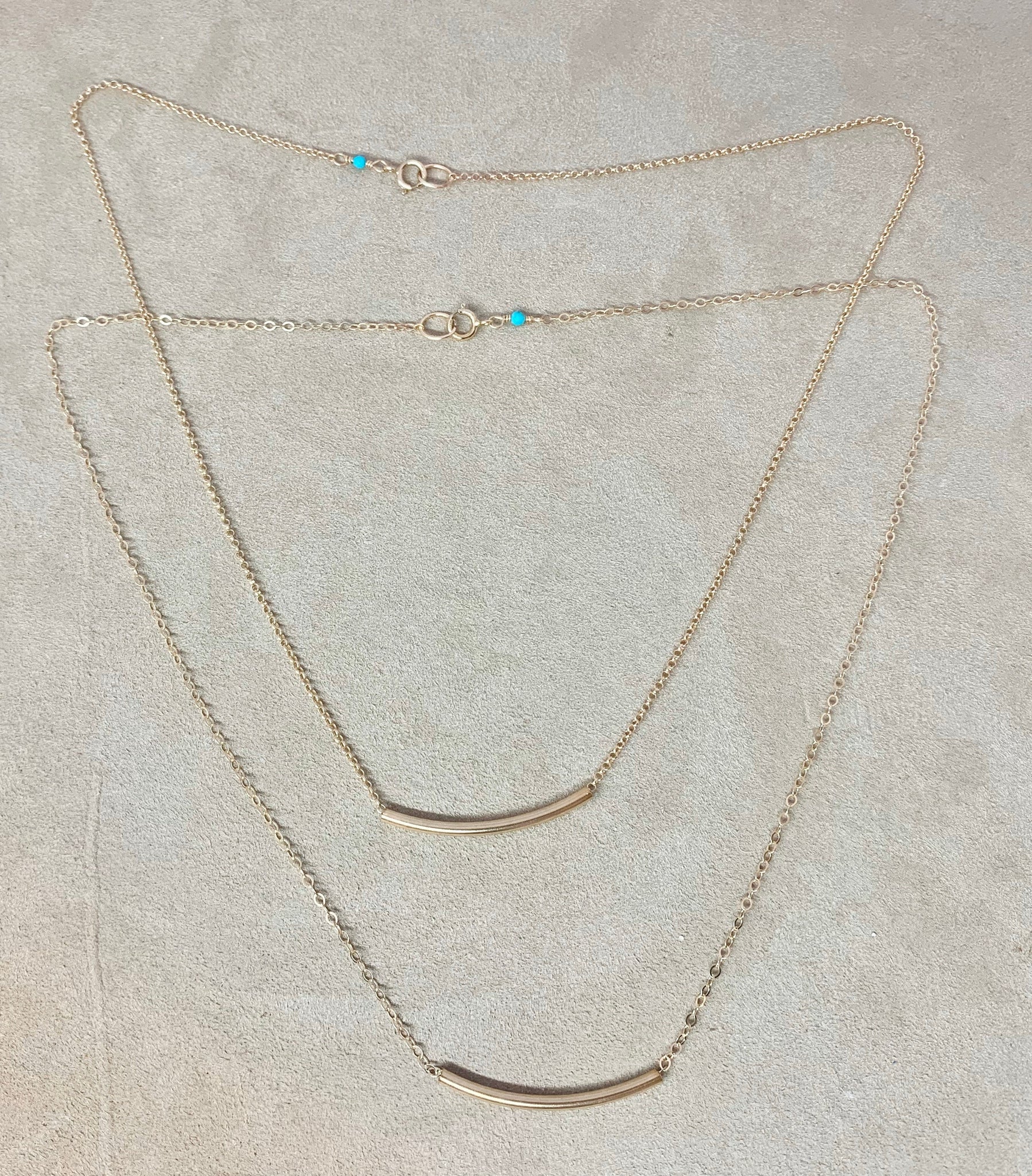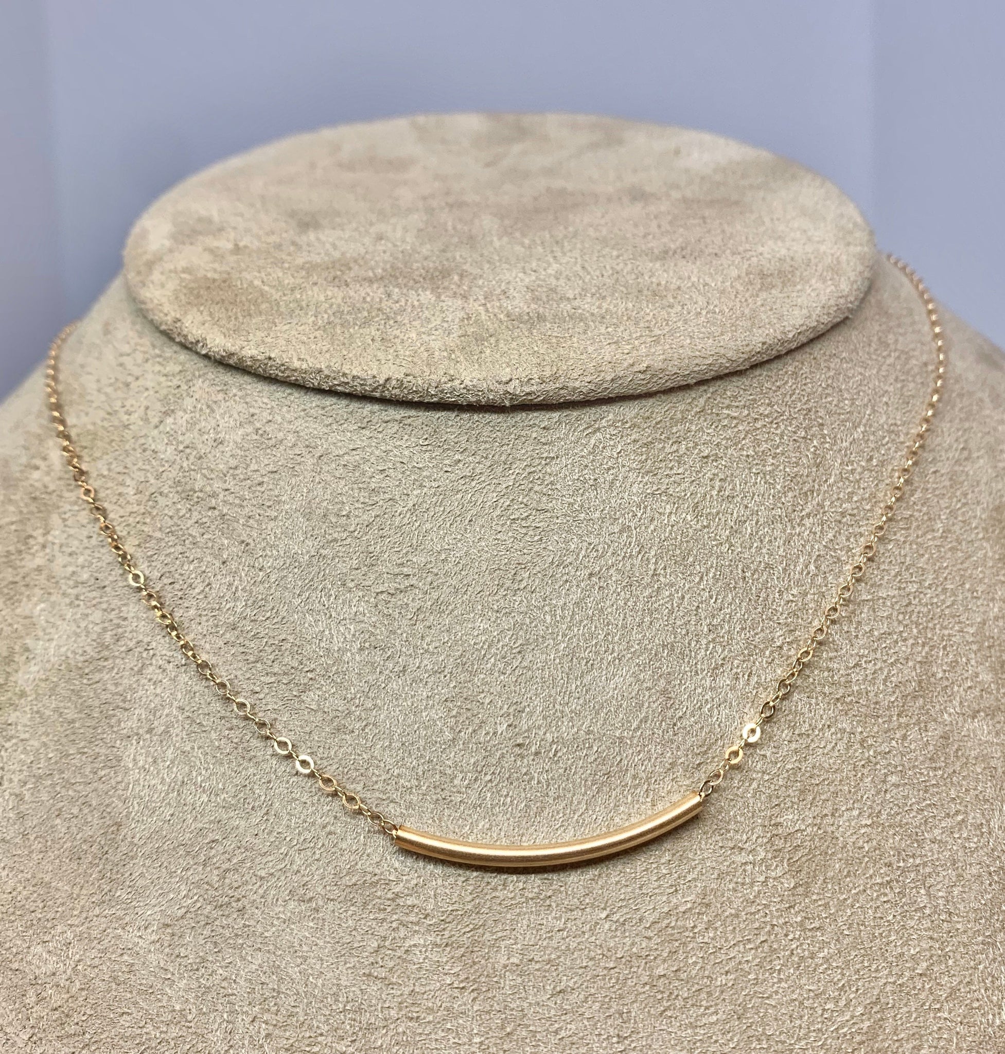 This dainty curved gold filled tube bead necklace is a lovely minimalist style! An everyday type of piece! Perfect alone or layered two together or even with your other favorite necklaces. This necklaces simplistic beauty is an excellent accessory 😘 for every day!