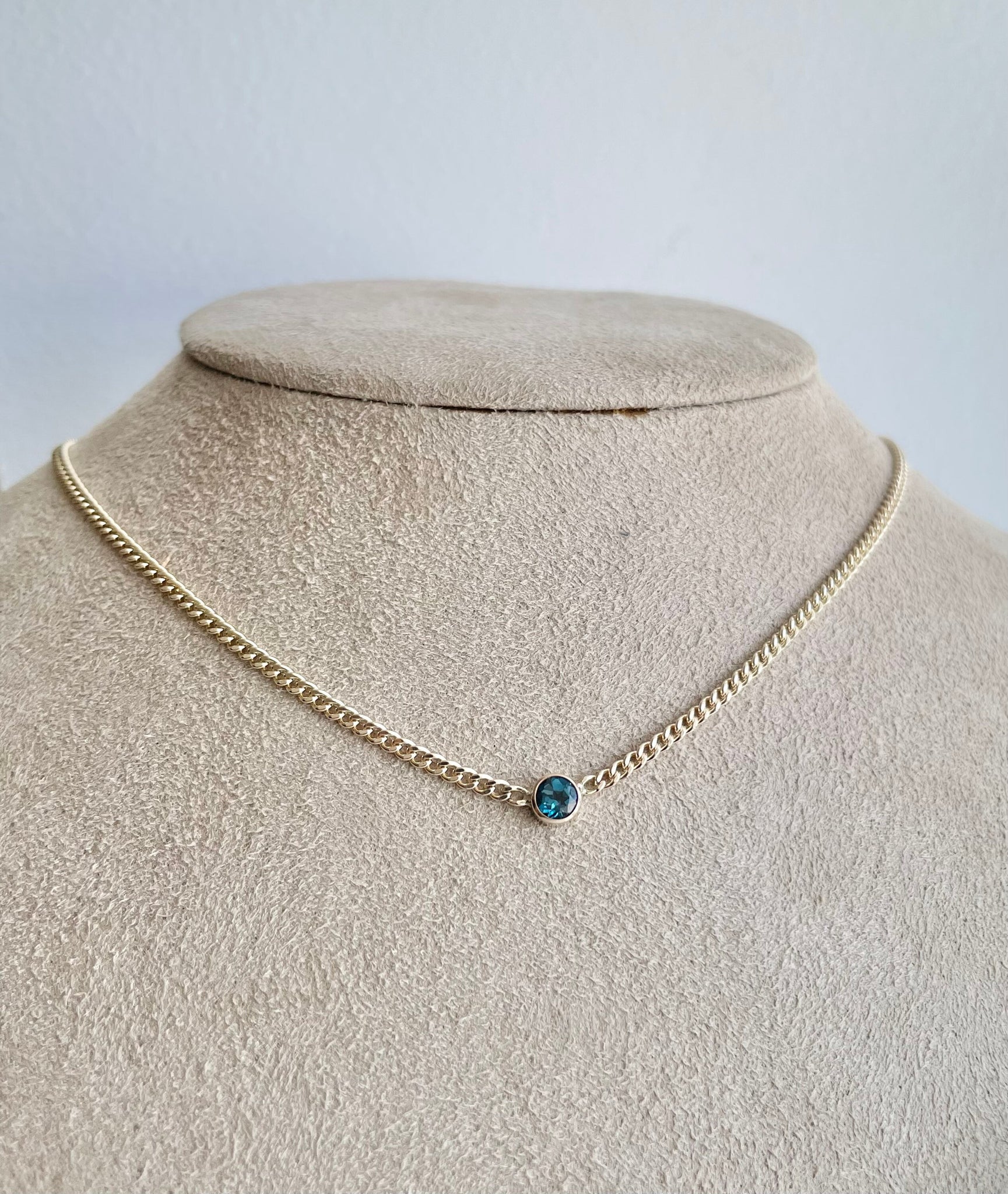 Is a lovely little every day minimalist necklace or choker! (Also pictured in London blue topaz and emerald)