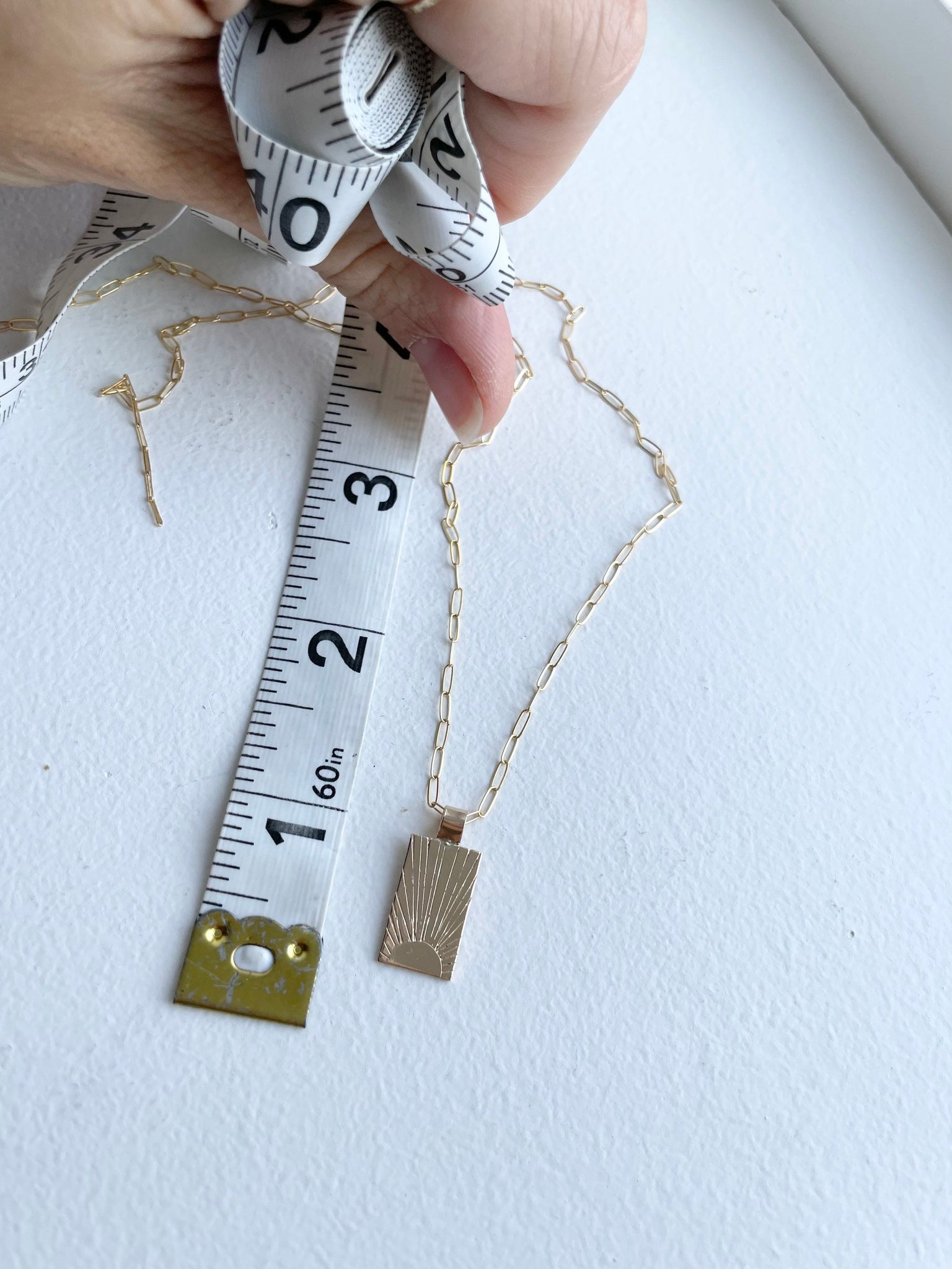 This little 14k gold filled sun rays pendant is just over half an inch long and hangs from a lovely 14k gold filled paper lip chain. All components are 14k gold filled.