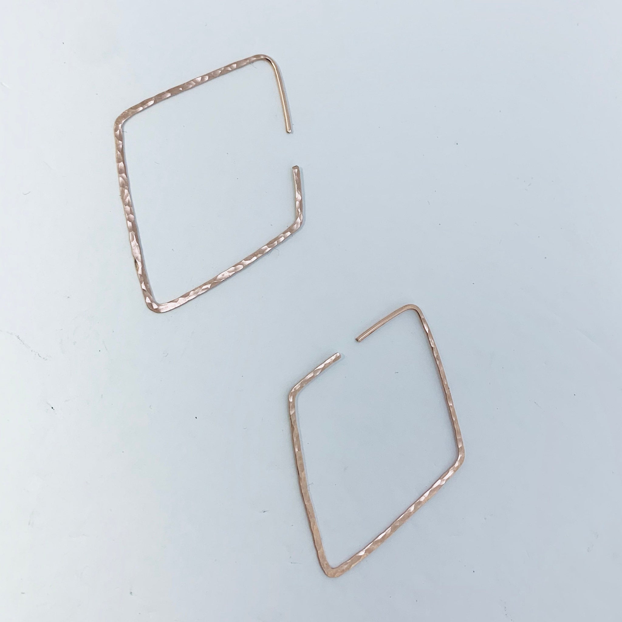 These earrings are so lightweight you could wear them all day and all night, and because they are hand formed and textured 14k rose gold filled 18 gauge wire with approximately 3 inches or so in length. **size can be customized as well**