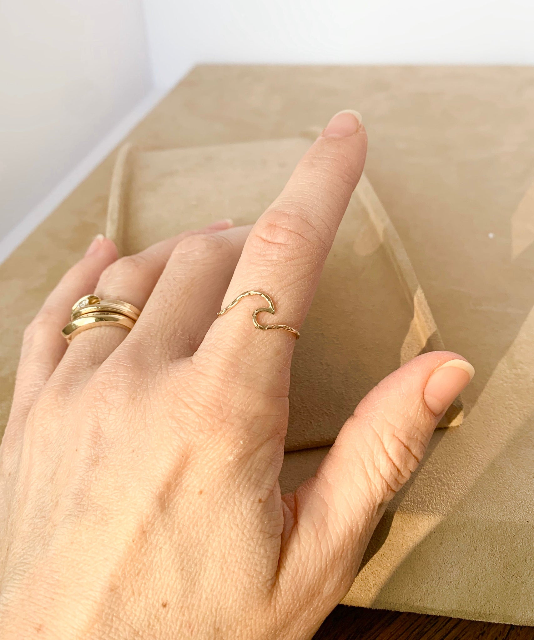 This little textured wave ring is for any beach or ocean lover! Or even a lake girl like me 😜! A nice little ring that wears lovely on its own as the textured finish makes this ring sparkle but it’s totally stackable as well!